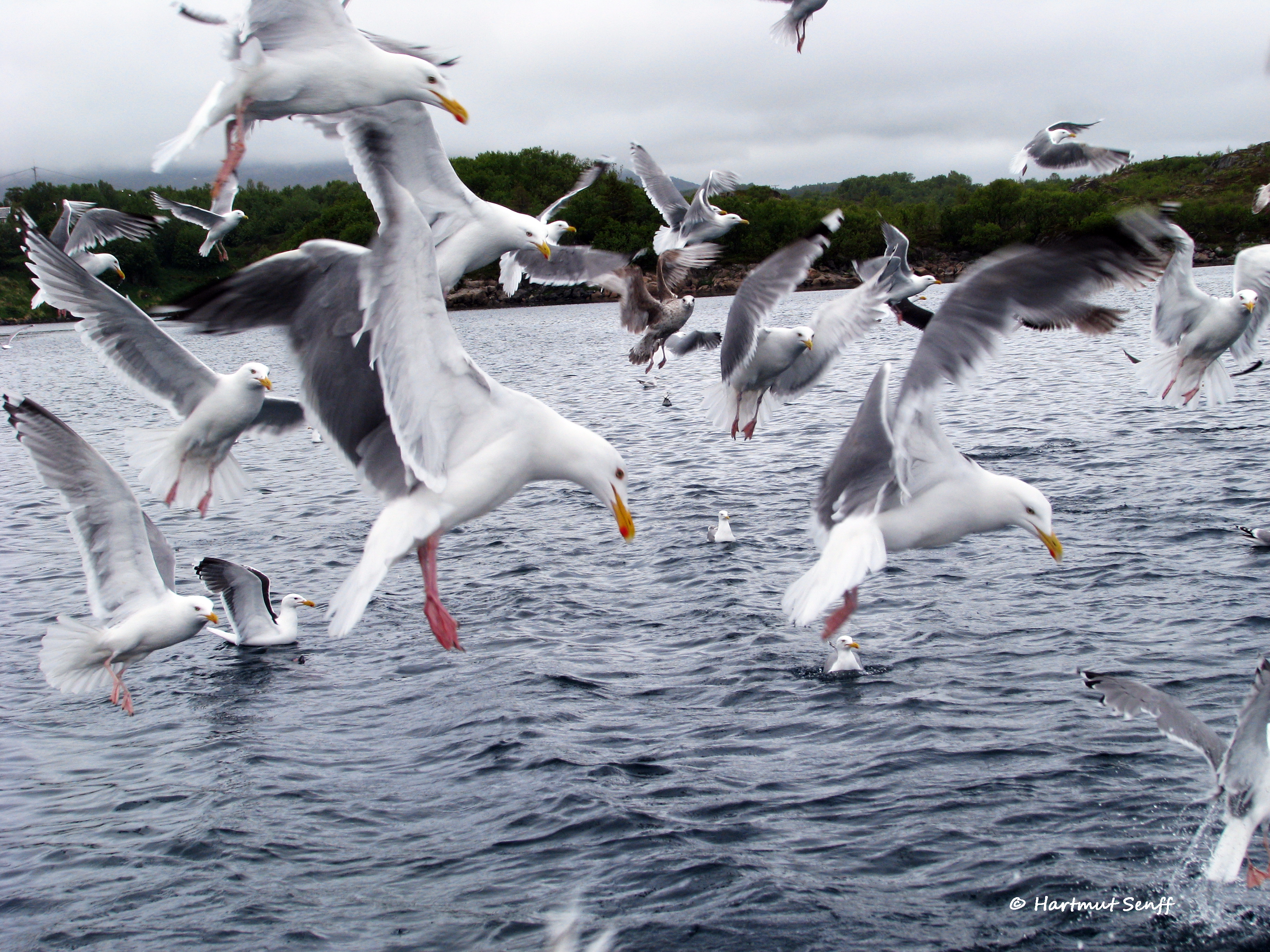 Drei Möwen flogen auf mich zu. Landeten auf meinem Tisch und zack weg war der Teller bzw. alle drei Fischstücke. Ich war geschockt. Habe noch nie so etwas erlebt. Und ja, es war nicht lustig. 1.) War das Essen teuer. 2.) Hatte ich Hunger und wollte essen. 3.) Ich hasse diese Tiere ;) Okay, ich konnte mich beruhigen, floh von diesem Restaurant und besuchte die nächste Show. Am Nachmittag überkam mich dann der Hunger noch einmal und ich beschloss bei einem Take-Away einen Hotdog zu holen (Yes, real american food ;). Was passiert? Ich kann vom Hotdog abbeissen und die Viecher (sorry für die Bezeichnung) kommen wieder. Sie greifen aus der Luft an. Doch bei diesem Mal reicht es nur für die Folie, in welcher der Hotdog war. Was bleibt für mich? Einen Hotdog welcher so schnell verschlungen wird, dass mir fast übel wird und der Hass auf diese Tiere wird grösser.