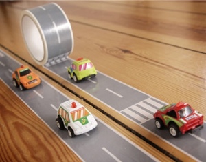 Wenn Mama und Papa mit den Kids drinnen spielen müssen, weil es draussen regnet. Wie wäre es mit einer Autobahn, die ganz schnell angeklebt und wieder weggelöst werden kann?