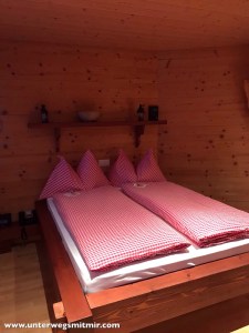 Wie haben eine Nacht im Hotel Meielisalp übernachtet. Das Hotelzimmer ist sehr klein, aber charmant eingerichtet, es handelt sich dabei um das „Alpstübli“. Das Alptsübli hat den Innovationspreis „Unterkunft des Jahres 2010“ vom Thunersee Tourismus erhalten. Ist ja wirklich sehr hübsch eingerichtet, oder? Uns hat es auf jeden Fall sehr gefallen. Auch das Essen war sehr fein und das Personal freundlich. Es ist aber eher ein Seminarhotel / Gasthaus und wirklich einfach. Einen Fernseher hat es zum Beispiel nicht im Zimmer :) Aber manchmal ist dies ja auch nicht schlimm.