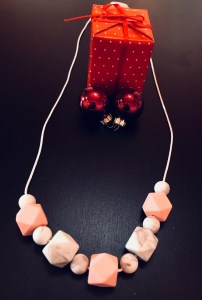 Zurück zum Thema von diesem Beitrag. Seit ich Mutter bin, trage ich sehr wenig Schmuck. Meistens nur Ohrringe, den Ehering und that’s it. Vorher hatte ich sehr oft Halsketten an. Doch mit einem Baby ist das nicht mehr sehr gäbig, denn ich will ja nicht, dass mein Sohn irgendwelche schädlichen Materialien im Gesicht, in den Händen oder im Mund hat. Und dennoch finde ich es schade, ganz auf dieses Accessoire zu verzichten. Nun komme ich zu dem Ding, welches ich nicht auf den ersten, sondern auf den zweiten Blick entdeckt habe. Etwas Schönes für mich, aber ich bin mir sicher, dass es auch meinem Sohn dienen wird.