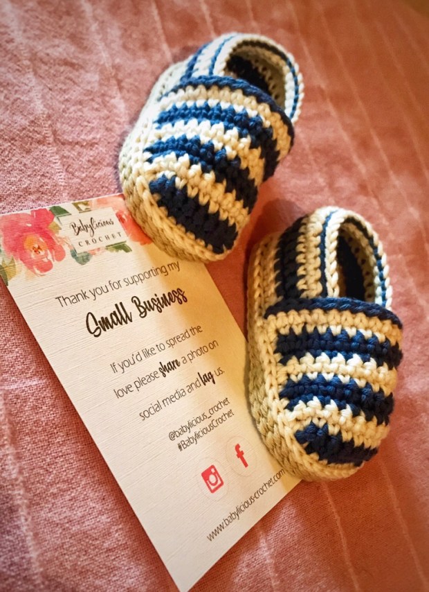 Nun komme ich zum Zweiten Onlineshop. Hier findest du zuckersüsse Handmade-Produkte. Ja, es ist nicht ein grosser Onlineshop, aber umso mehr lohnt sich die Unterstützung. Miriam ist Mutter und häckelt für ihr Leben gern. Deshalb tut sie dies auch für Kundinnen und Kunden. Sie verbindet Tradition mit Modernem. Ich habe von ihr die süssen Baby Espadrilles für unseren Sohn bestellt…einfach zuckersüss, oder? Liebvoll war der Kontakt mit Miriam und genau so waren auch die Espadrilles verpackt. Wenn du also auf der Suche bist nach einem Geburtsgeschenk oder tollen Schuhen/Finken für dein Kind, dann bist du hier richtig. Die Espadrilles sind aus 100 % aus Bio-Baumwolle und sehen wirklich super aus. Toll ist auch, dass die Aritkel bei 30 Grad gewaschen werden können. Es gibt sie in ganz verschiedenen Farben. Zudem fertigt Miriam noch Booties, Mokassins, Ohrenwärmer oder auch Mützen an. Schau beim Shop von Miriam vorbei.