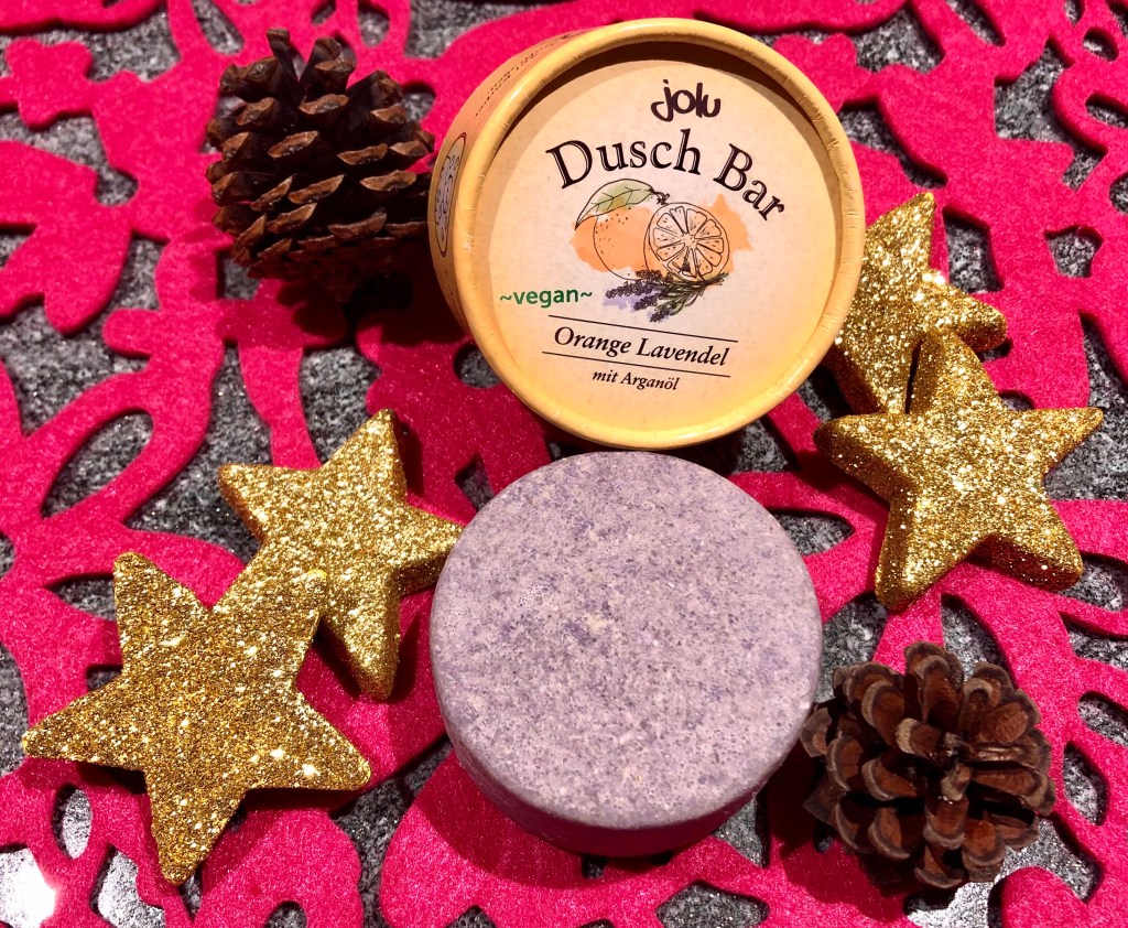 Beim festen Duschbar konnte ich die Variante Orange Lavendel testen. Auch hier ist der Duft intensiv, ich mag ihn. In der Duschbar ist Rügener Heilerde enthalten. Diese regt die Durchblutung an. Bei der Duftbar gibt es auch noch die Varianten Grapefruit Zitrone, Rose Lavendel oder Hanf.